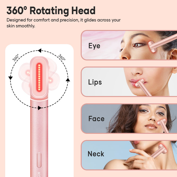 Experience advanced skincare with this all-in-one LED wand that lifts, tones, and rejuvenates. Featuring 7 light modes, gentle heat, massage, and a 360° rotating head, it enhances serum absorption and targets a wide range of skin concerns for a visibly radiant, youthful glow.